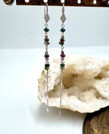 Ferskvandsperle Halskæde Med Agat & Zirkonia (40cm)