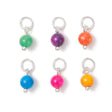 Runde vedhæng i farvet naturlig ferskvandsskal med sølvfarvet ophæng.