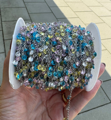 Normal pris 169,00 krEnhedspris /Ikke tilgængeligVandfast Kæde Med Multifarvet Zirkonia, Forgyldt Stål, 1m