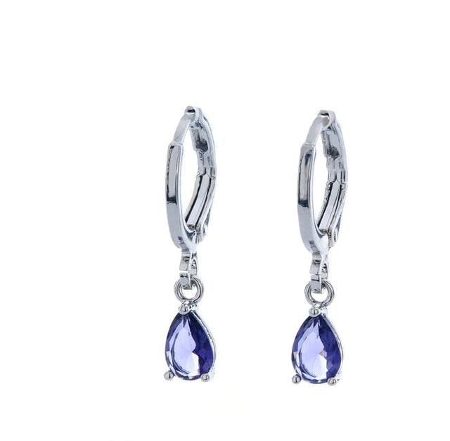 Smukke øreringe med en enkel creol og en flot dråbeformet lilla zirkonia sten.