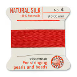 Griffin Seidenschnur mit Nadel, Rot, Gr. 4, (0,60mm), 2m ist auf Lager und wird versandt, sobald es wieder verfügbar ist